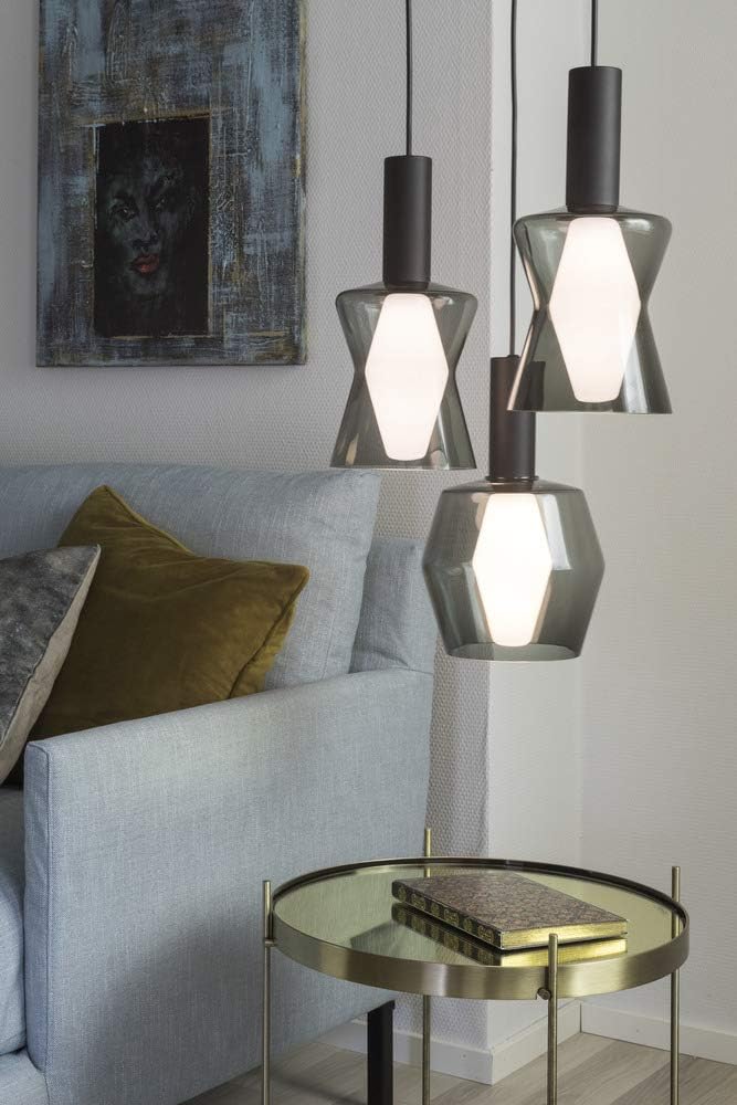 The K2-142 chandelier features a colored glass shade surrounding the classic WIR lamp by Tapio Wirkkala. The elegant WIR lamp's shape and light beautifully shine through the lampshade. The slender K2-142 chandelier is beautiful on its own, but multiple units can be used in various configurations to create a spectacular lighting group. The product includes a dimmable WIR-85 LED lamp, alamp holder, a black metal ceiling rose, and a 3.1-meter cable. The lampshades are made of mouth-blown clear glass, each lampshade is handmade and unique.